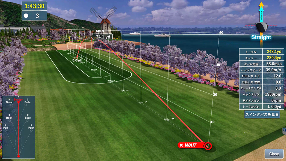 高性能シミュレーターである「SDR」では弾道解析やスイング分析はもちろん、ドライビングレンジやアイアン練習など色々なモードで効率よく練習する事ができます。また、国内の有名コースをラウンドプレーする事も可能です。専用アプリを使えば練習データをアプリで閲覧する事もできます。
